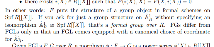 - What are examples of formal groups? What is a morphism? When are they isomorphic?