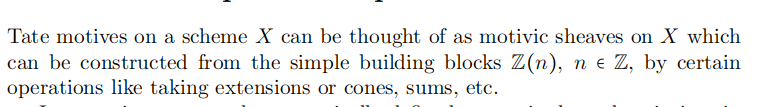 - \({\mathbb{L}}= [{\mathbf{A}}^1_{/ {k}} ]\) is the Lefschetz motive and \({\mathbb{T}}= {\mathbb{L}}^{-1}\) is the Tate motive, its tensor inverse.
