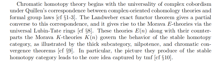 The complex bordism spectrum \({\operatorname{MU}}\) is a universal cohomolology theories : complex orientations of a spectrum \(E\) are in one-to-one correspondence with multiplicative maps \({\operatorname{MU}}\to E\).