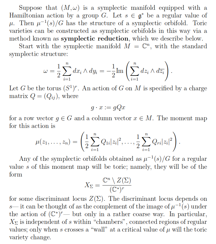 Uses symplectic reduction and a moment map: