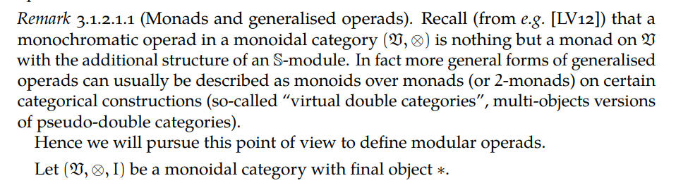 Given an operad \({\mathcal{O}}\), the functor taking things to free \({\mathcal{O}}{\hbox{-}}\)algebras is a monad.