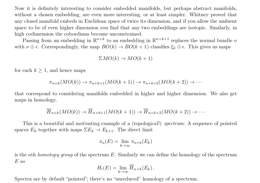 Another good consequence of spectra is the Brown representability theorem. It says that any generalized cohomolology theory on spaces is representable by a spectra.